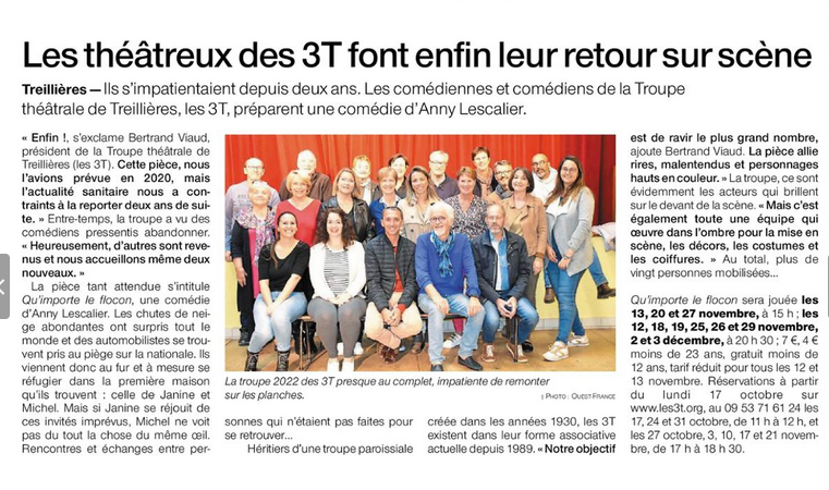 Le journal Ouest-France met notre troupe à l'honneur dans un article du 16 octobre 2022.